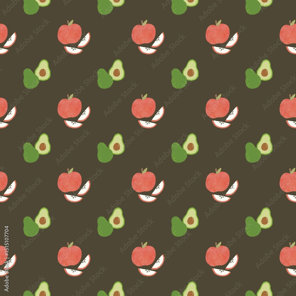 seamless pattern with apple and avocado