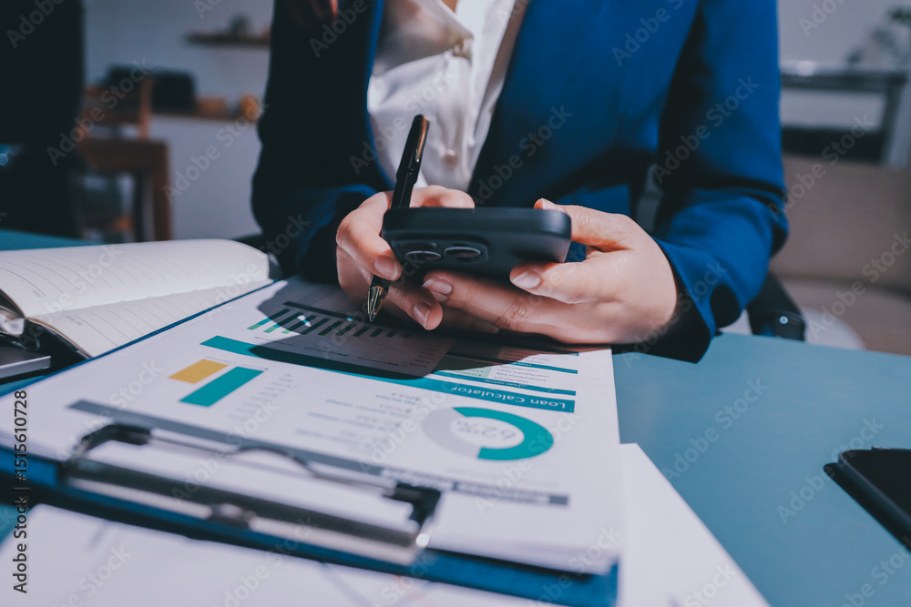 Expert woman asian female people review data number costing managerial account prepare monthly actual cost variance report at tax audit office. ESG sheet budget control ERP process service project.