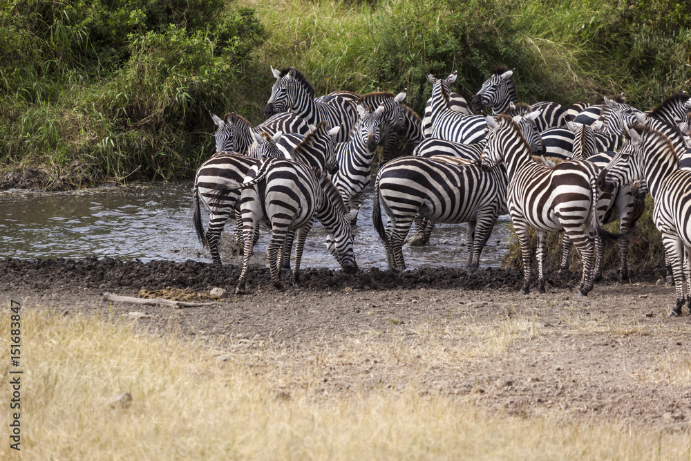 Zebra and foal are on the move during the great migration Serengeti national park Area, Tanzania.