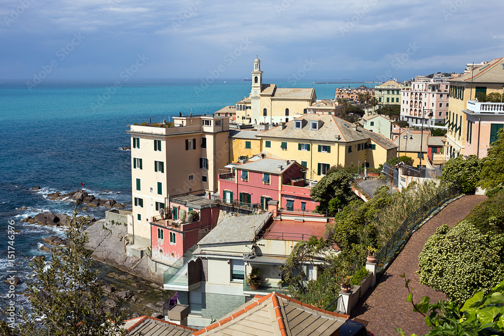 Genoa - the colorful old houses of Boccadasse borough- Liguria. Tiny fishing village located at the end of Corso Italia - Italy