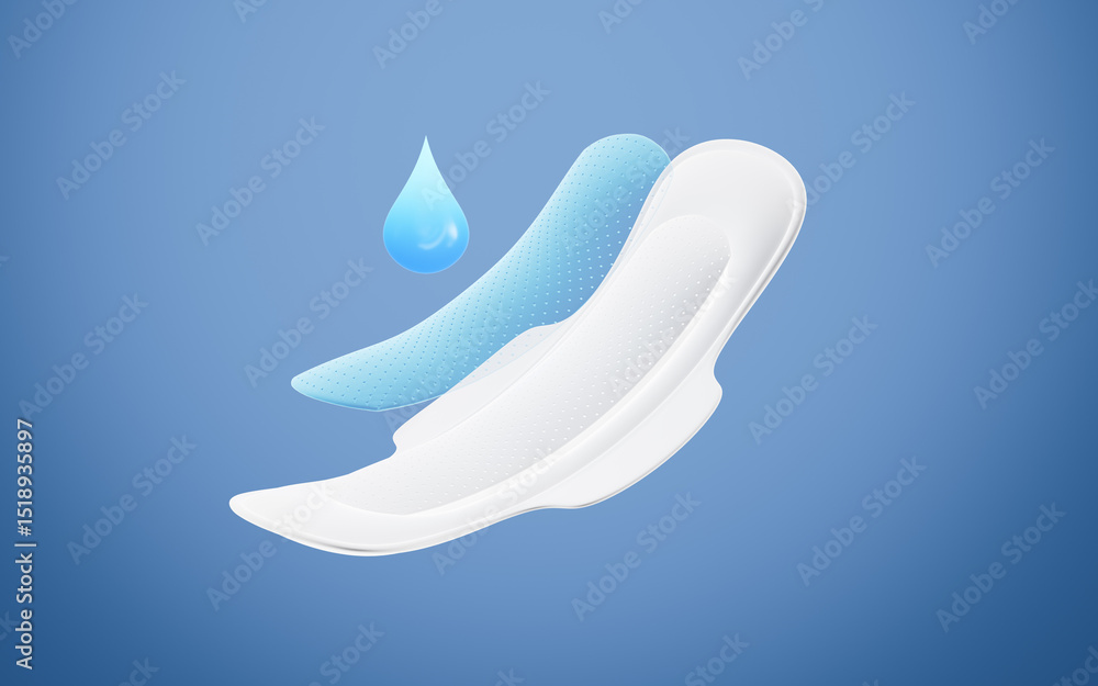 Menstrual pad advertisement, The concept of light and breathable, soft and breathable and so on, 3d rendering.