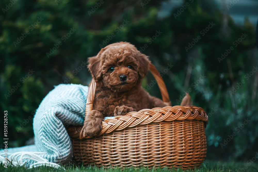 Poodle babies in kennel. Newborn toy poodle puppies. Dwarf red poodle