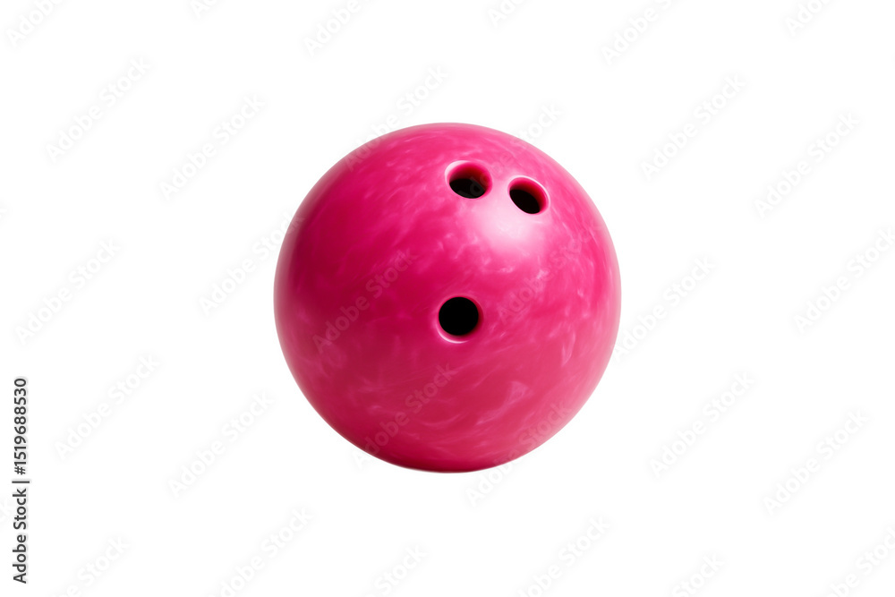 Glossy pink bowling ball with three finger holes, isolated on transparent background. Perfect for sports, entertainment, and lifestyle design concepts, transparent, clipping path