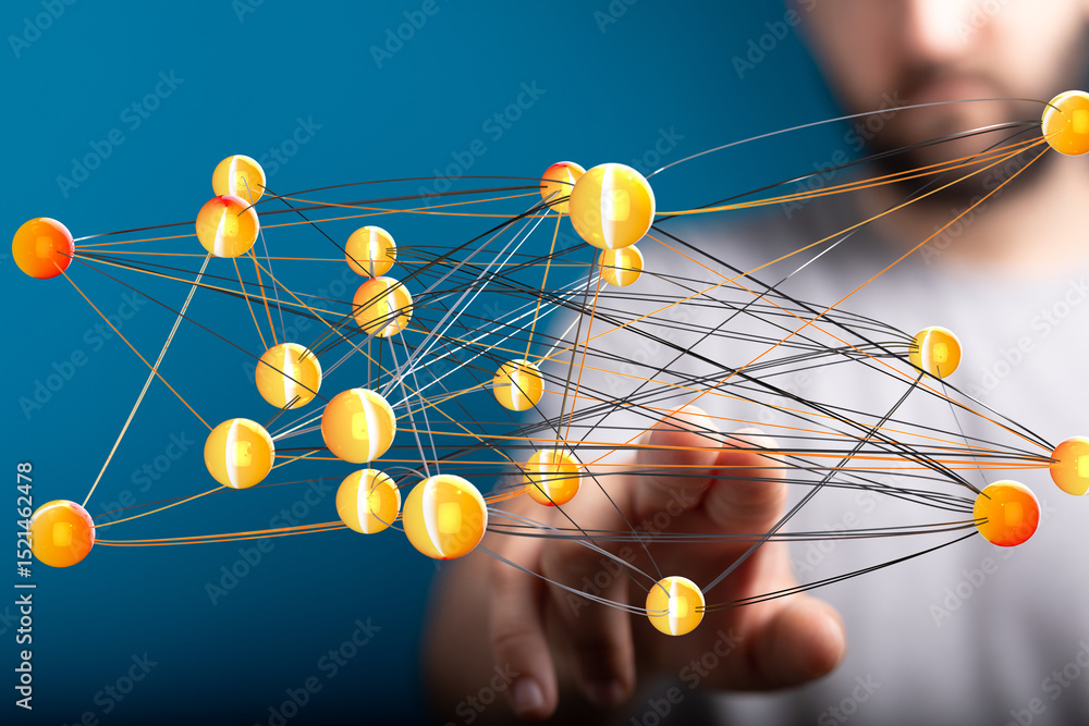 Abstract image of interconnected nodes, representing global network, data connections, or complex systems.