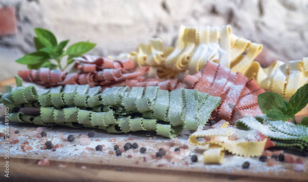 Homemade Italian pasta is cooked at home using an old recipe. Italian cuisine. Home food.