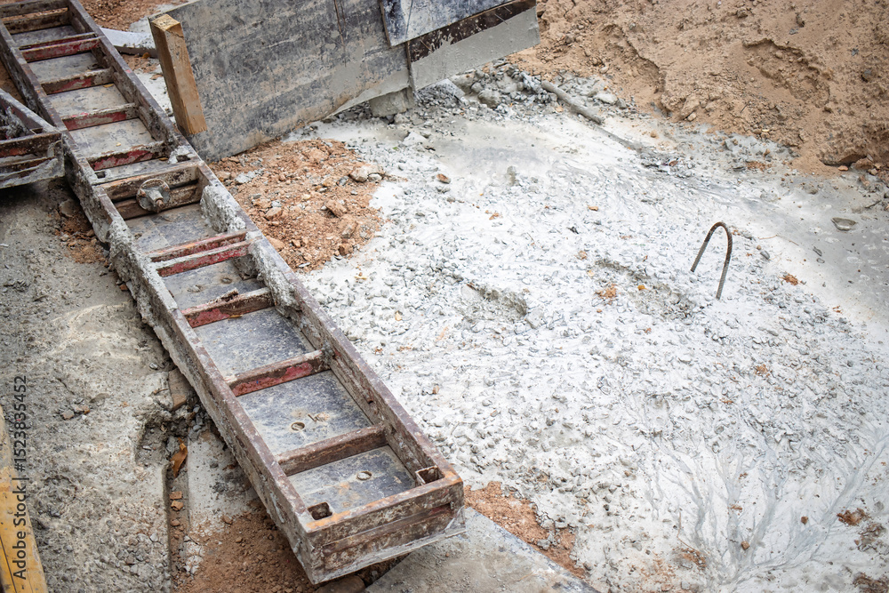 Construction site showcasing a concrete foundation being poured at a residential construction project