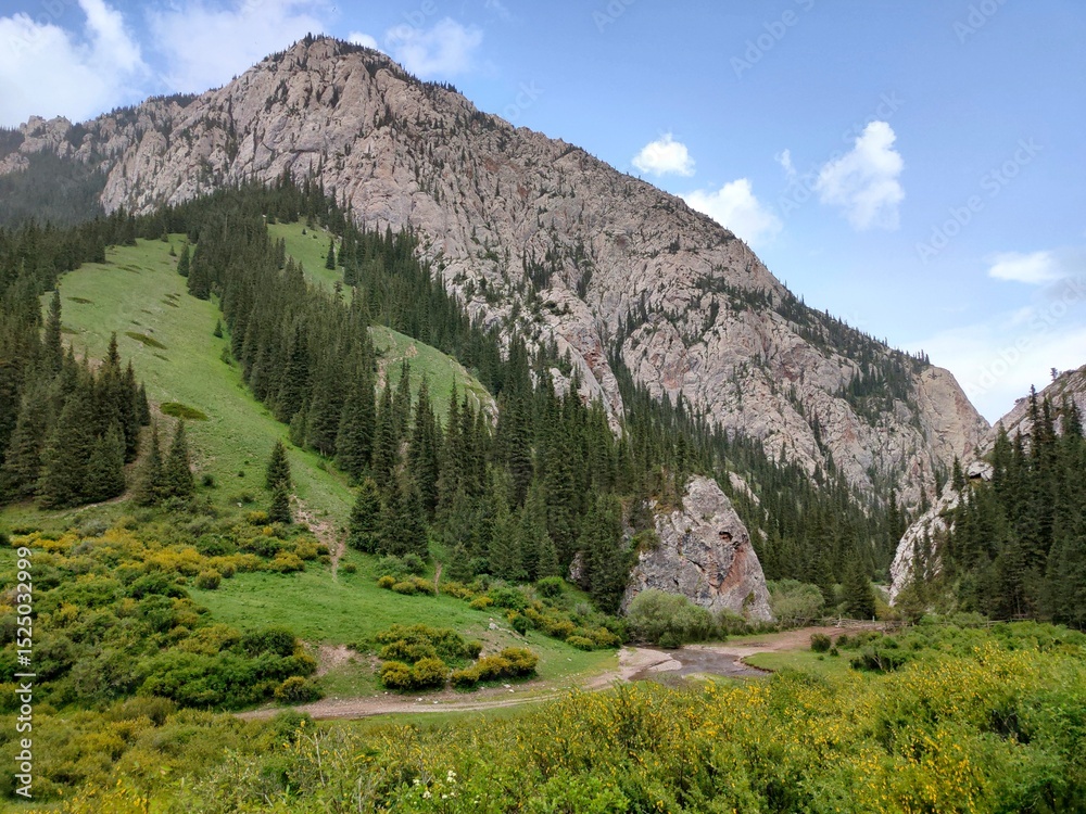 Komirshi Gorge in Kazakhstan – Breathtaking Summer Landscape with Lush Greenery and Mountain Serenity.