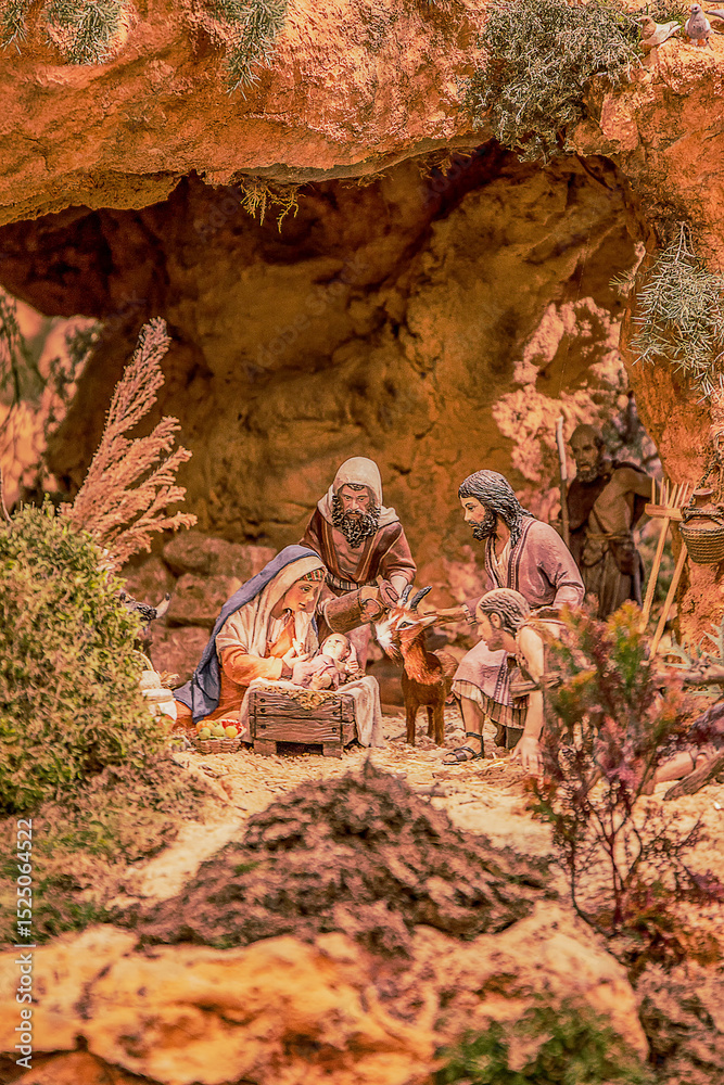 Macro photo of Nativity scene with Three Wise Men and camels – Catholic and Christian Christmas symbol, Epiphany moment, religious holiday background, perfect for sacred seasonal imagery and stock pho