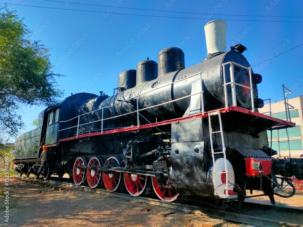 Old Soviet Steam Locomotive with Red Star – Vintage Industrial Power.