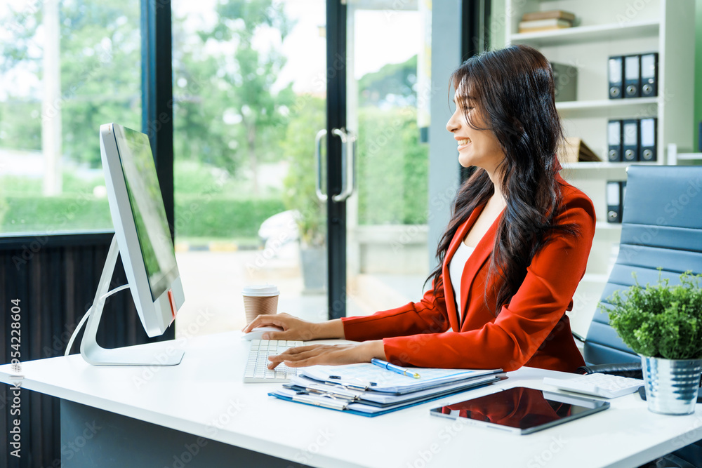 Two jewelry store clerks in formal uniforms inspecting ring displays, using a tablet and clipboard to record inventory inside a brightly lit showcase counter.