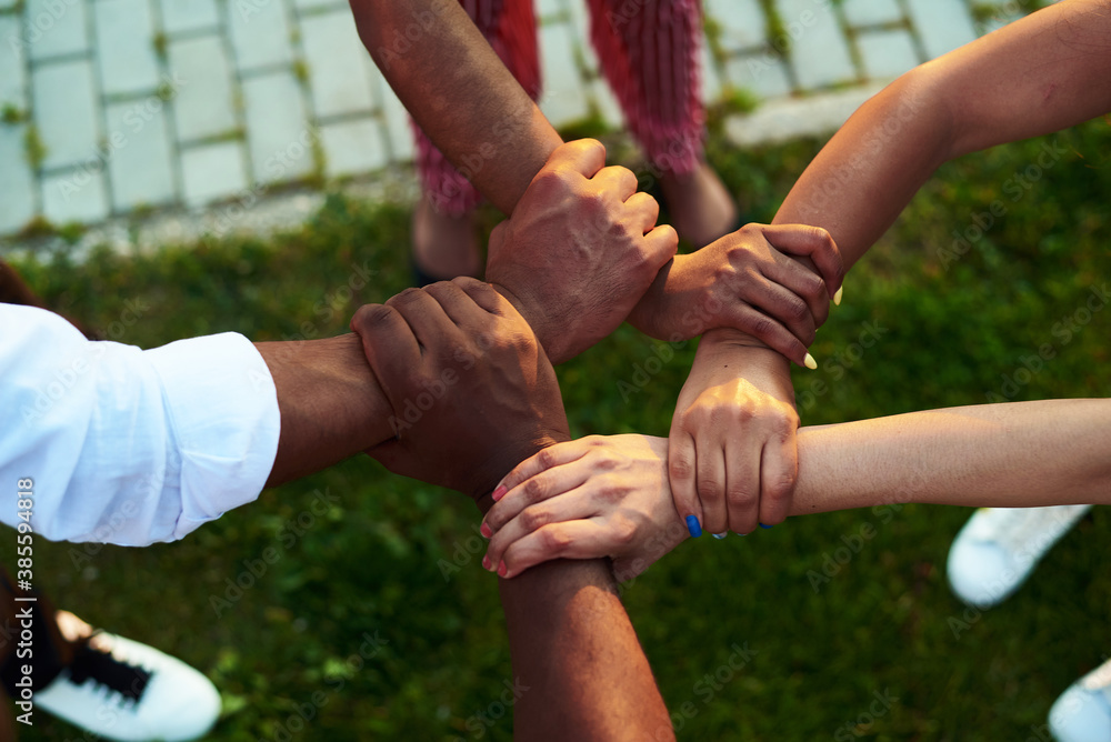 Show host and guest meeting to stream podcast episode together, creating online content with live broadcast discussion. Vlogger talking to man using professional equipment to record chat