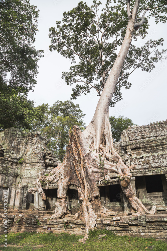 Overgrown tree roots at Ta Prohm Temple in Siem Reap, Cambodia