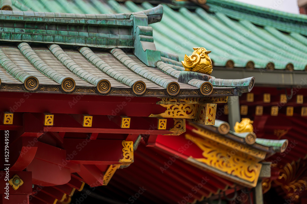 Colorful Japanese Temple Roofs in Tokyo, Japan