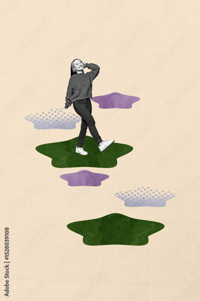 Collage of person walking on star shapes representing career growth ambition and business success journey