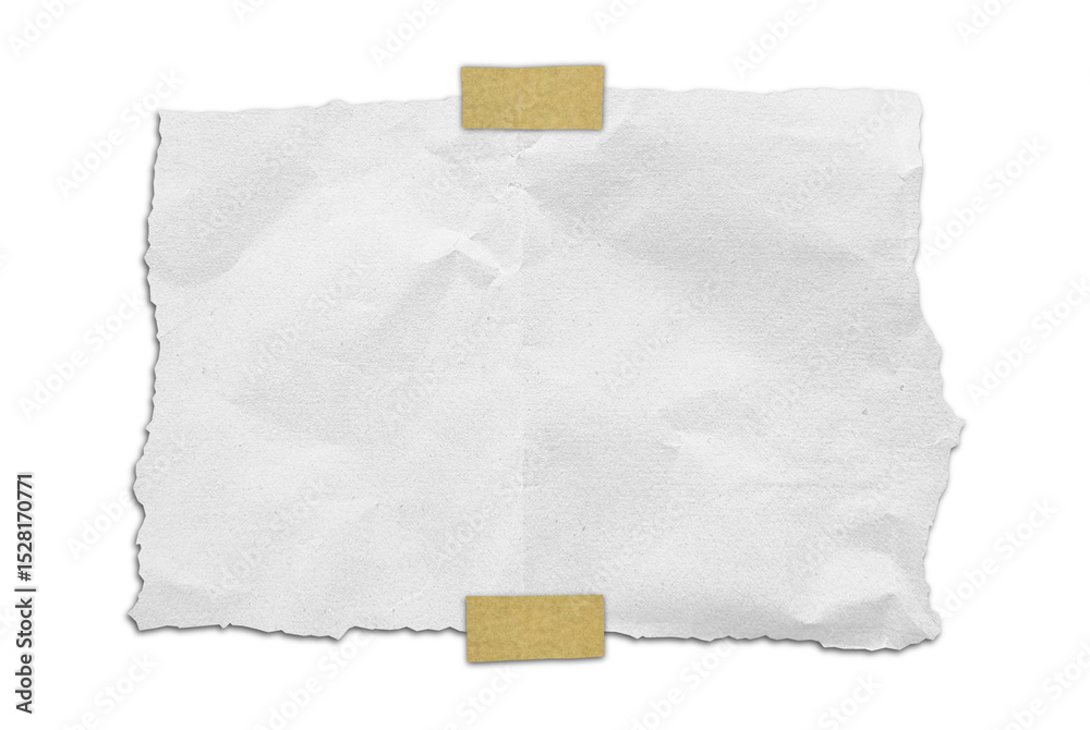 grunge old white paper texture with adhesive tape on it use as background with blank space for design. bright grey wrinkle recycle paper with brown tape. rough paper texture.