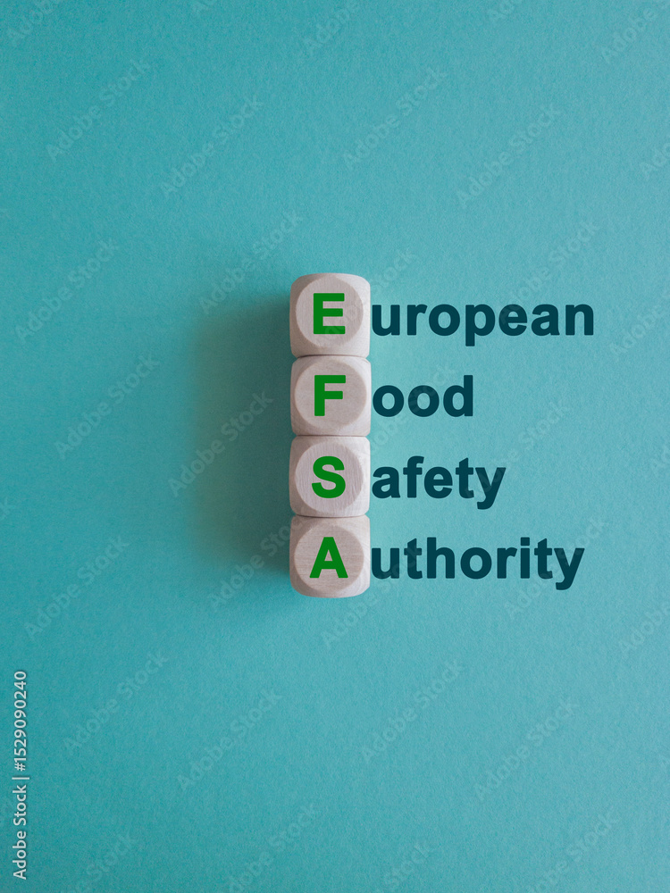Cubes form the expression EFSA - European Food Safety Authority. Beautiful blue background. Business concept.