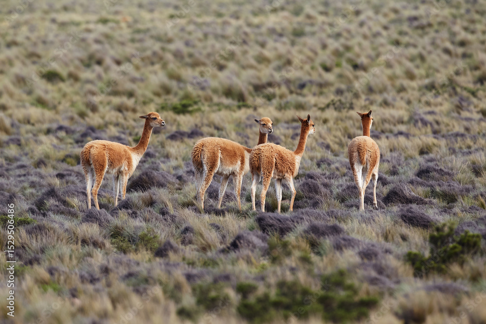 wild vicuñas roam the highlands of the Peruvian Andes — guardians of the puna and symbols of natural elegance. Their golden fleece glows under the Andean sun, a reminder of nature’s quiet majesty