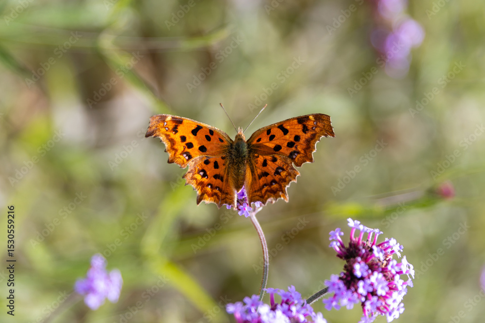 꽃 위에 앉아 있는 화려한 무늬의 나비