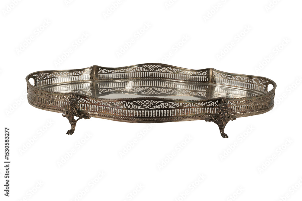 antique silver tray isolated Vintage European Silver Plated