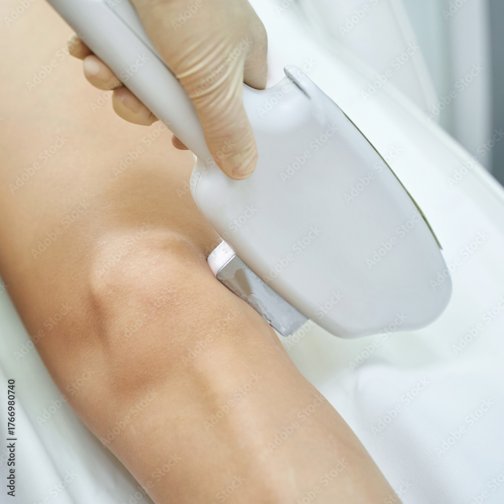 Young, beautiful Latin woman in blue underwear standing in a forest in the golden hour at sunset. The woman is happy and smiling.
