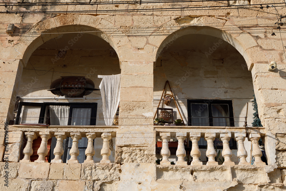 Two Traditional Arched Balconies on a Maltese Stone Building