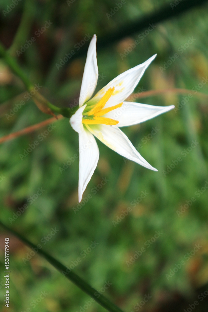 The beauty of the white flower Zephyranthes candida which usually starts to bloom with beautiful white flowers after rain.