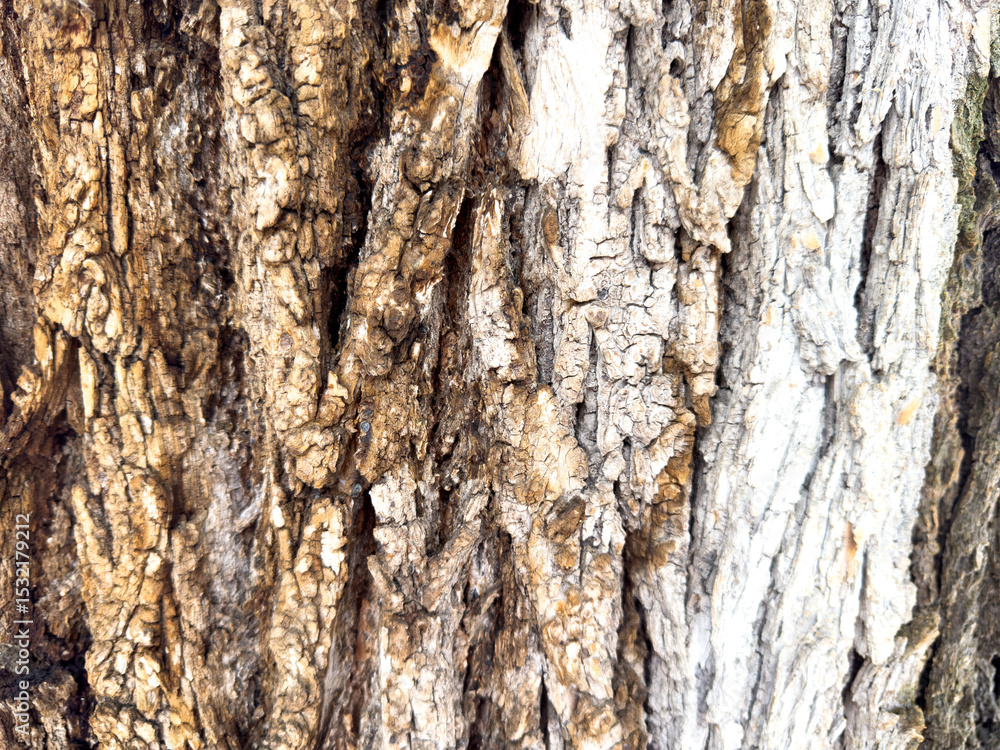 Close-up of tree bark texture with visible cracks, layers, and natural wood pattern.