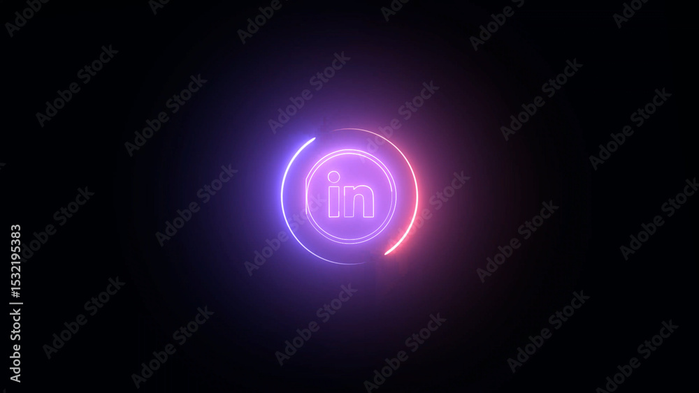 Neon LinkedIn Logo Glowing on a Black Background with Purple and Red Accents The image