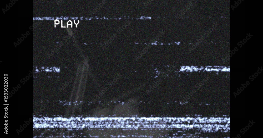 Displaying VCR player screen at home showing horizontal static lines, with pixelated PLAY text