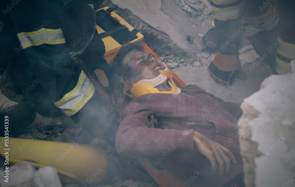 Teenager being saved from debris