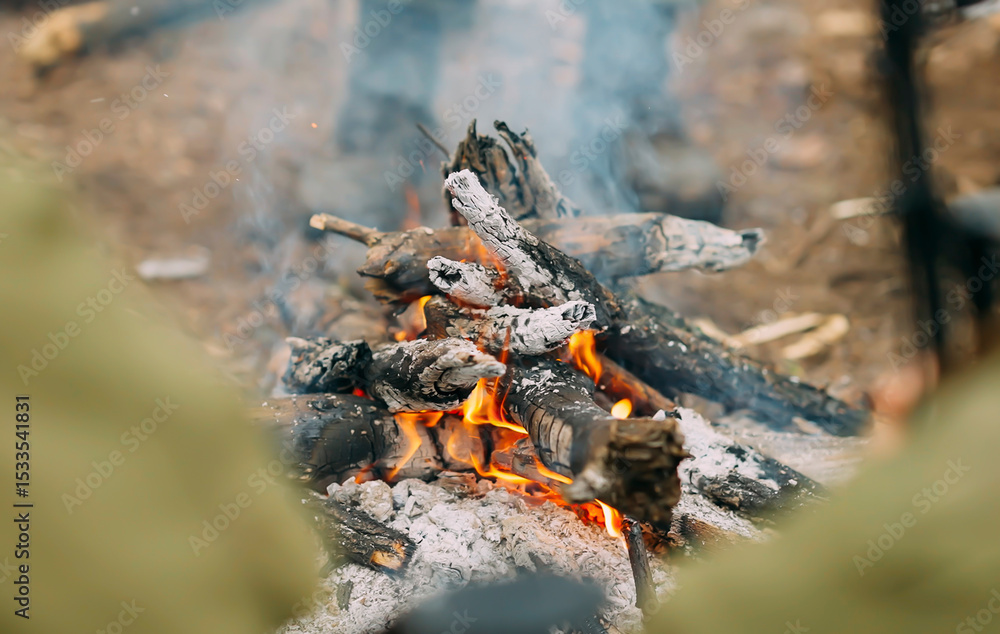 A Lonely Evening by the Forest- Embracing the Beauty of Nature with the Fire Burning at Dusk near a River, Against the Enchanting Evening in the woodland.