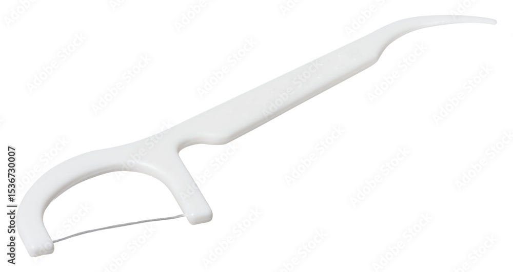 White plastic dental flosser on isolated background. Oral hygiene item