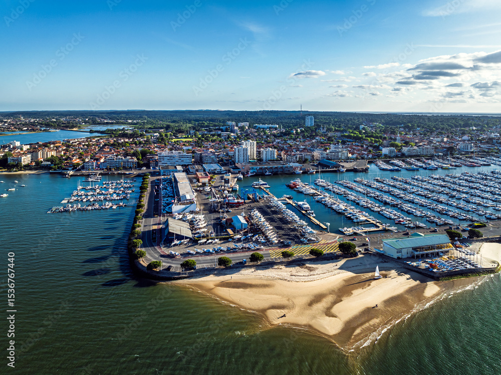 Marina and Beach in Arcachon from a drone, Arcachon, Gironde, France, Europe
