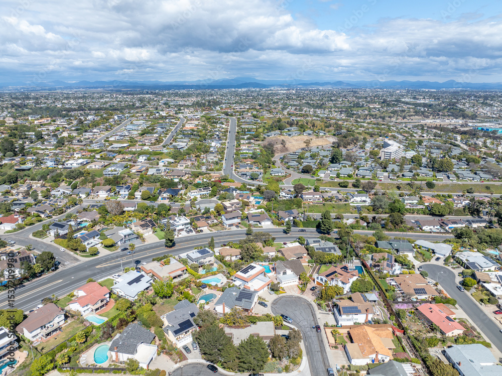 Aerial view of residential urban sprawl in San Diego, South California, USA