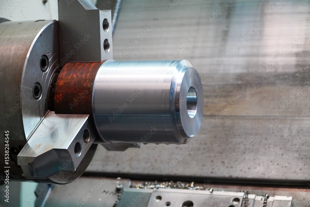 CNC lathe machine forming cutting the metal shaft parts.CNC turning machine