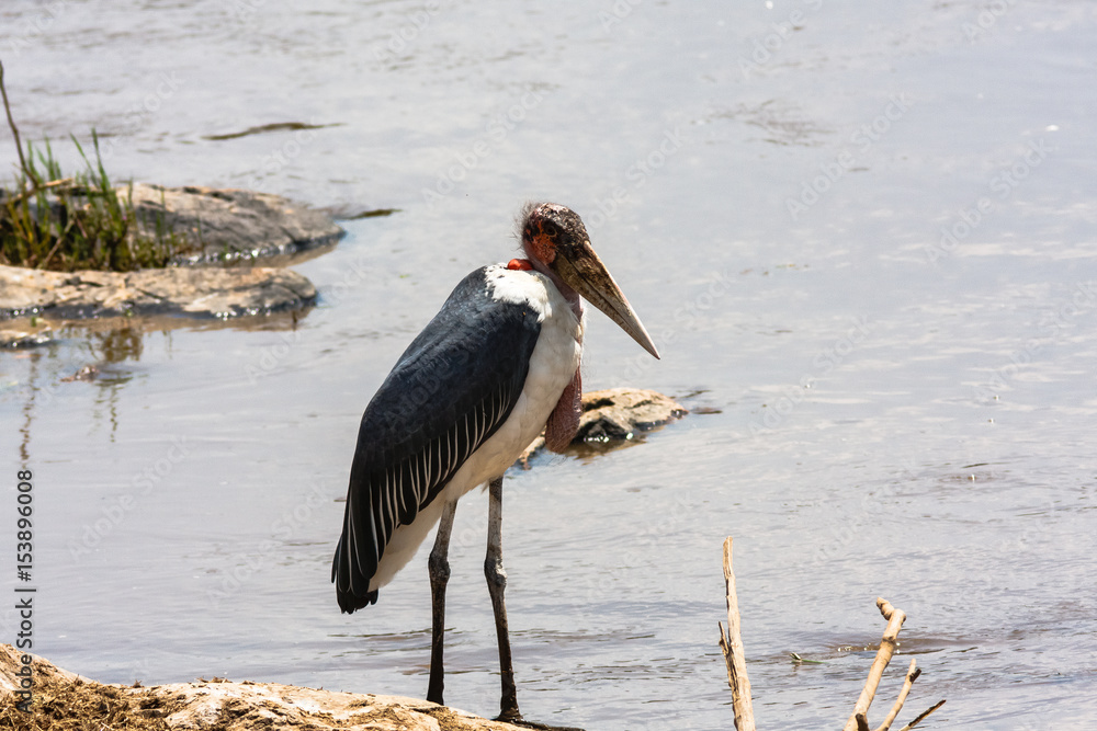 Marabu on the river bank. Masai Mara, Kenya
