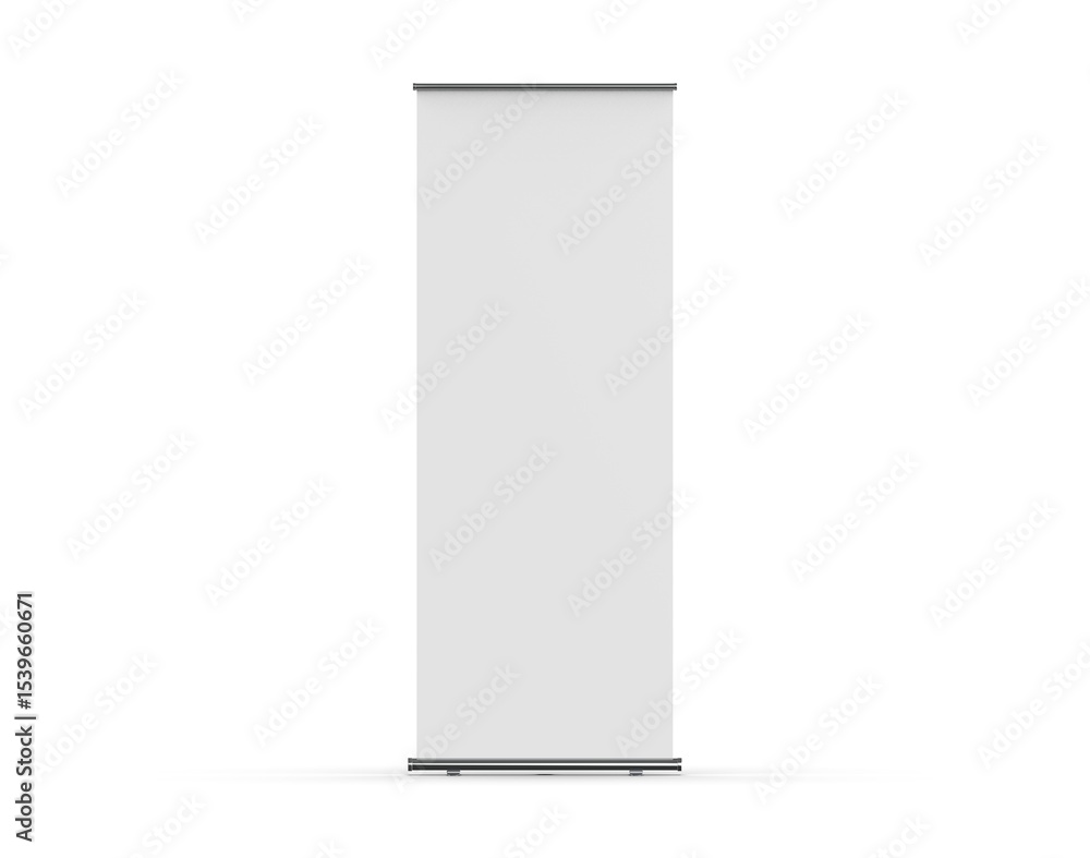 Blank standee roll up banner mockup template on isolated white background, 3d illustration