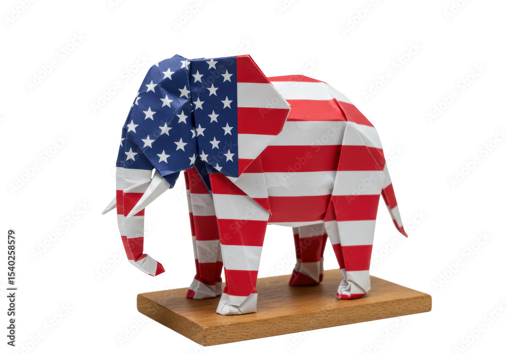 Isolated Origami Elephant with American Flag Design