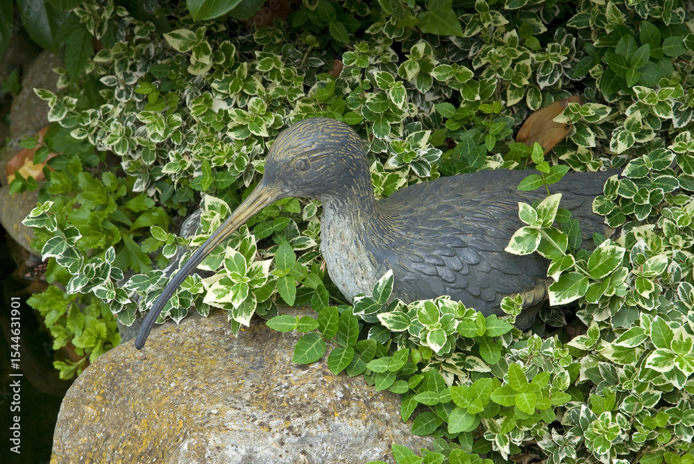 Décoration jardin, Sculpture d'oiseau, Courlis cendré, Jardin Iréne et Heinz Auer. Gaienhofen, Lac de Constance, Allemagne
