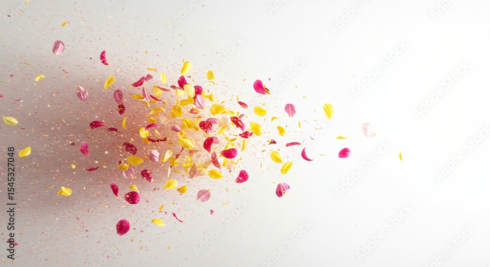 Vibrant Flower Petals Exploding in a Colorful Burst against a White Background