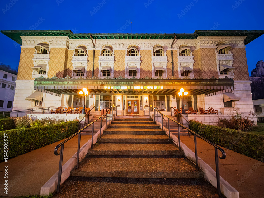 Night exterior view of the Fordyce Bathhouse Visitor Center And Museum