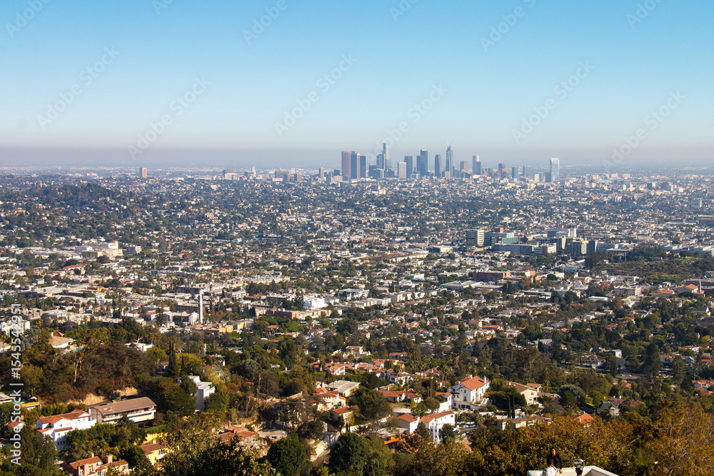 Downtown and the city from Griffith Park bservatory hills and landscape, Los Angeles, CA, United States