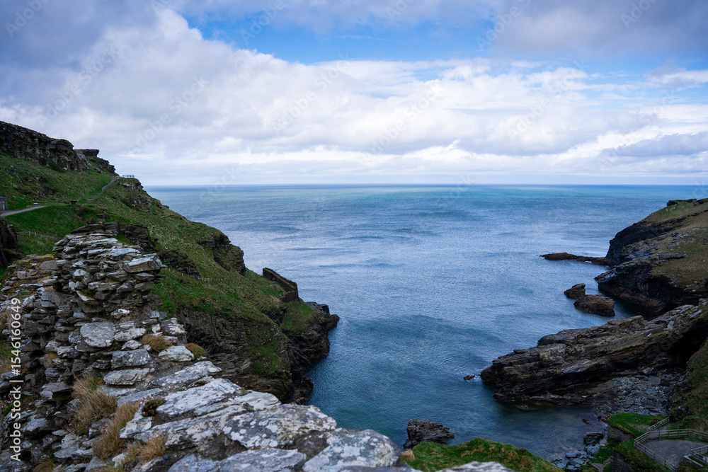 Tintagel coastline by Arthur King's Castle, on a cloudy spring day