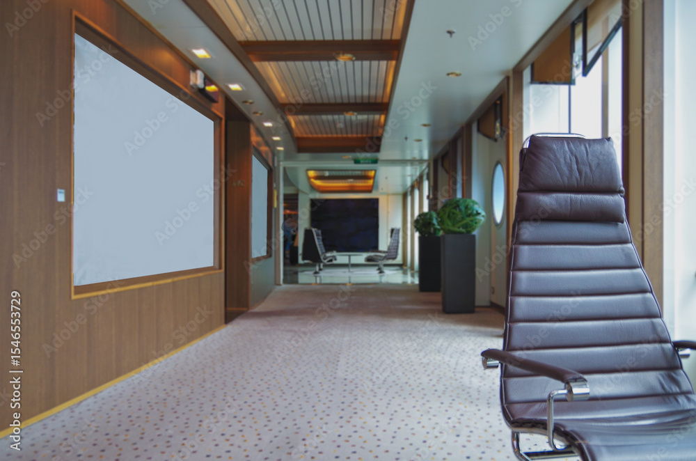 Luxurious modern observation or panorama lounge with floor to ceiling windows onboard expedition cruiseship cruise ship liner with comfortable seating and amazing views