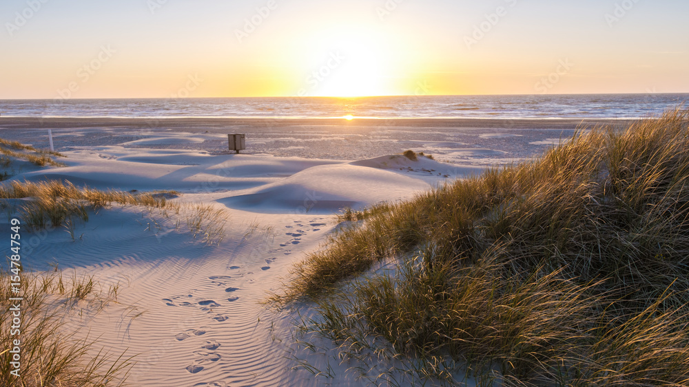 Sunset over the sandy beach dunes of Denmark creating a picturesque coastal landscape