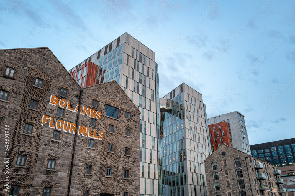 Dublin, Ireland - June 6 2025 "Architecture during the golden our at Dockland's in Dublin"