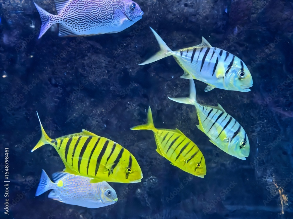 Diverse tropical fish species in vibrant aquarium ecosystem