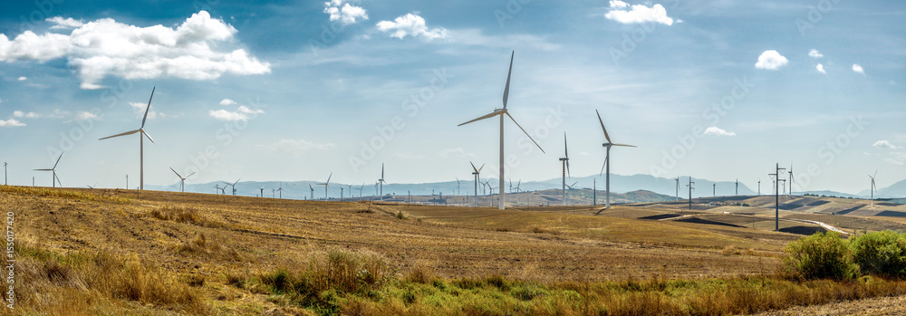 Large wind farm in south Italy. Large wind farm on the mountains on the border between Basilicata and Calabria, Italy