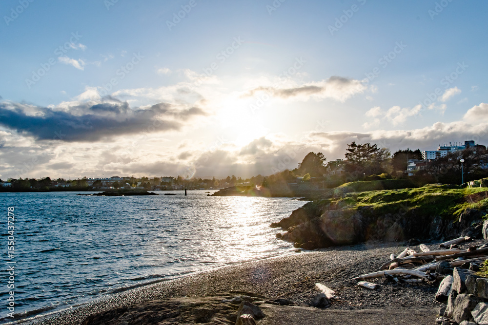 Sunset on Beach and Coastline Skyline of Victoria on Vancouver Island, BC