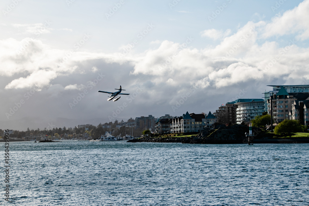 Seaplane Landing in Harbor Bay of Victoria, Vancouver Island, British Columbia